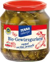 Gurken*, Wasser, Branntweinessig*, Zucker*, Zwiebeln*, Salz, frische Kräuter*, Gewürze*, Senfkörner*| Energie | Fett | gesättigte Fettsäuren | Kohlenhydrate | Zucker | Eiweiss | Salz |