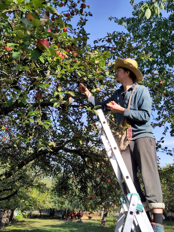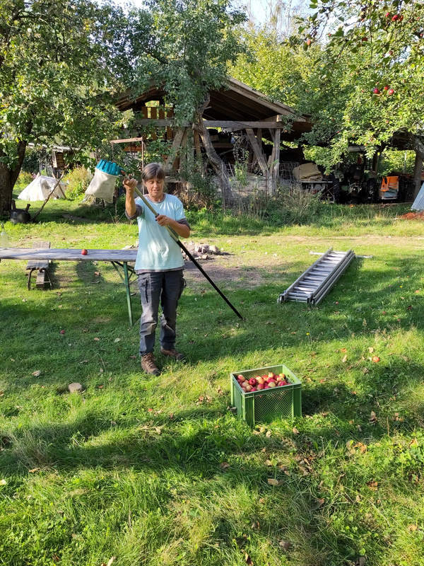 Kirsten hält auch noch 20 Mutterschafe und 6 Ziegen. Ihr ist wichtig, dass die Flächen ein Rückzugsort und Biotop für bedrohte Arten sind - ein Refugium zu schaffen für eine kultivierte kleine Wildnis. Zum Hof gehört eine alte Streuobstwiese. Manchmal bekommt die Abokiste von dort eine alte Apfeltsorte wie z.B. die Harberts Renette. Und weil wir auch ein Apfeltraum-Betrieb sind und von eben dieser Steuobstwiese unseren Namen haben, sollen unsere Kunden zwischendurch auch mal in den Genuss dieser Äpfel kommen.